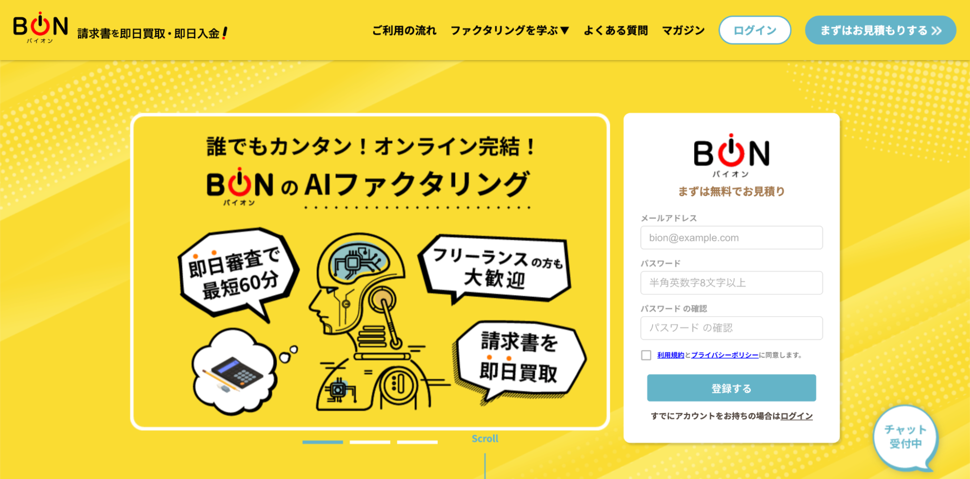 | バイオン | 2社間・3社間 | 10% | 最短60分 | 5万円〜 | バイオン公式HP |