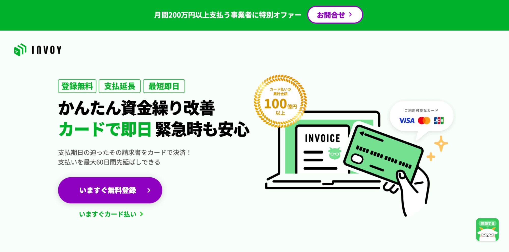 手数料は支払い料の3%と、業界最安水準で利用可能です。支払いをする請求書とカードがあれば誰でも利用可能で、財務審査もありません。