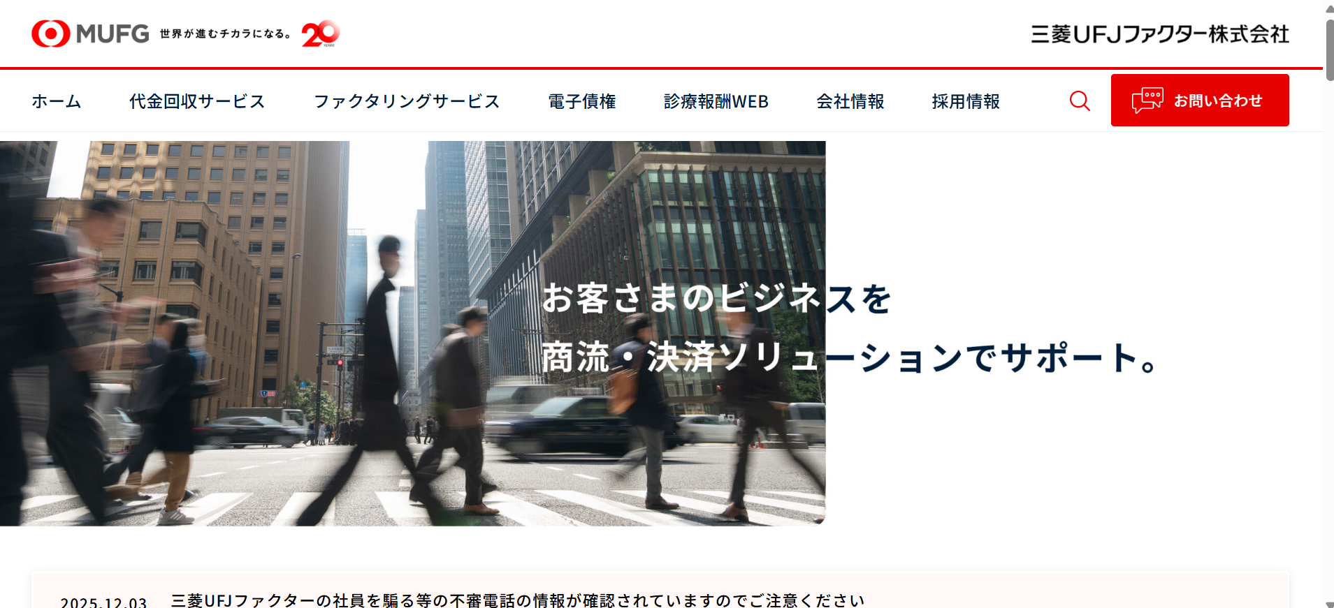 三菱UFJファクターは、売上債権の保証や与信管理を含むファクタリングサービスを展開しています。