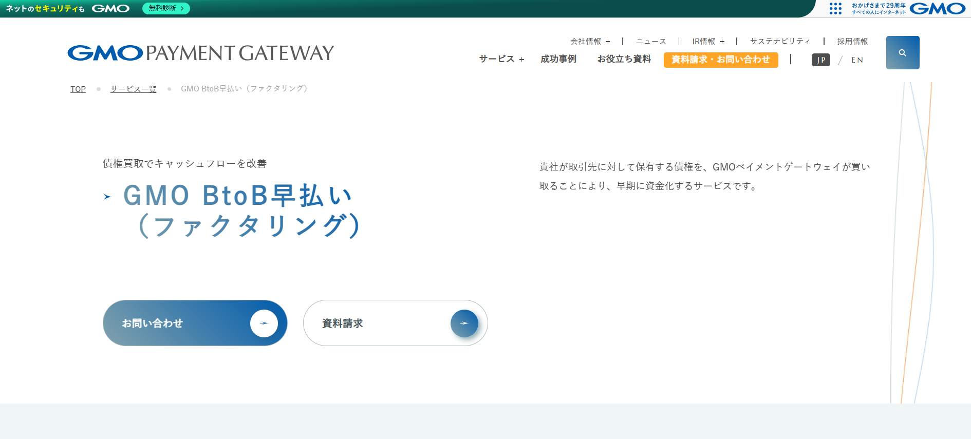 GMOBtoB早払いは、大手企業のGMOが提供する安心感のあるサービスです。豊富な実績と大手ならではの信頼性が強みであり、特に法人向けの利用に適しています。