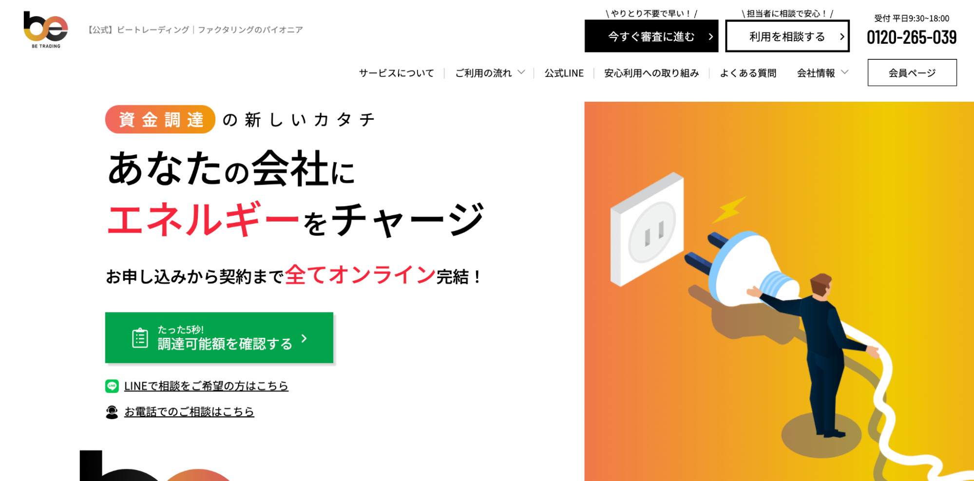 ビートレーディングは、業界トップクラスの実績を誇る大手ファクタリング会社です。全国対応が可能で、規模の大小を問わず幅広い企業に利用されています。柔軟な審査体制とスピーディーな資金化で、多くの方をサポートしています。