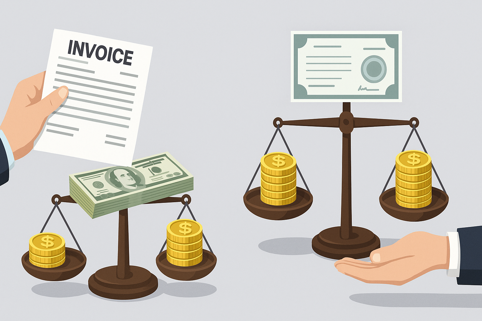 ファクタリングと手形割引はどちらも早期資金化の手段ですが、仕組み・審査基準・法規制・リスク負担の有無に大きな違いがあります。