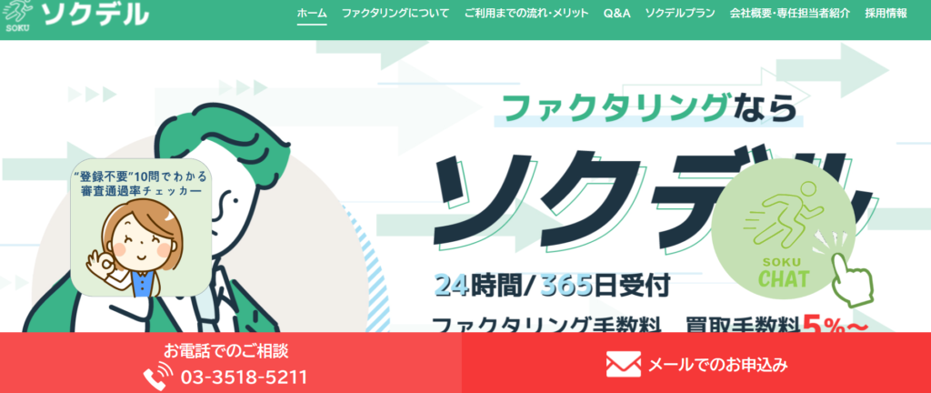 | ソクデル | 2社間・3社間 | 1.5%〜10% | 最短即日 | 非公開 | ソクデル公式HP |