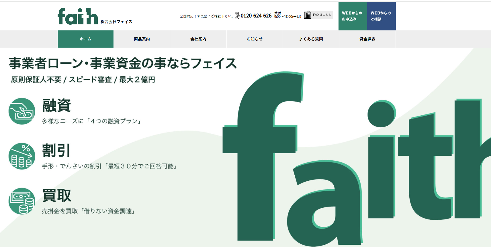 | フェイス | 2社間 | 1.5%〜 | 最短即日 | 50万円〜1億円 | フェイス公式HP |