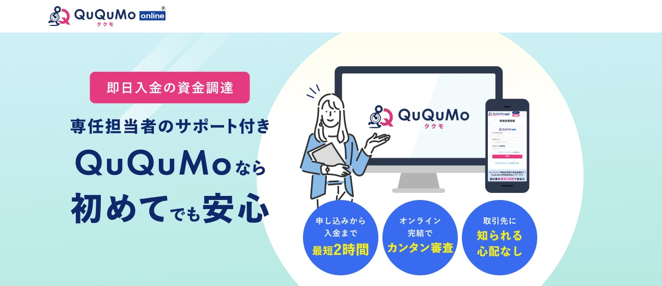 | QuQuMo(ククモ) | 2社間 | 1%〜10% | 最短2時間 | 非公開 | QuQuMo公式HP |