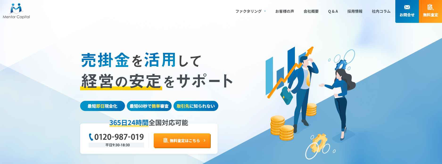 | MentorCapital | 2社間・3社間 | 10%〜30% | 最短即日 | 非公開 | MentorCapital公式HP |