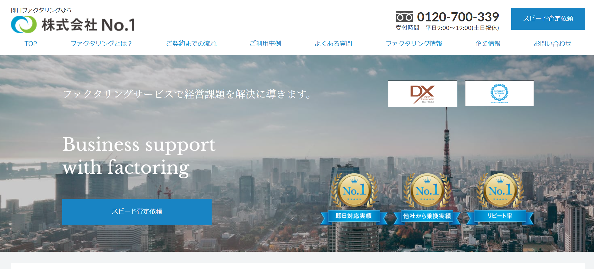 | 株式会社No.1 | 2社間・3社間 | 2社間:1%~15% 3社間:1%~5% |