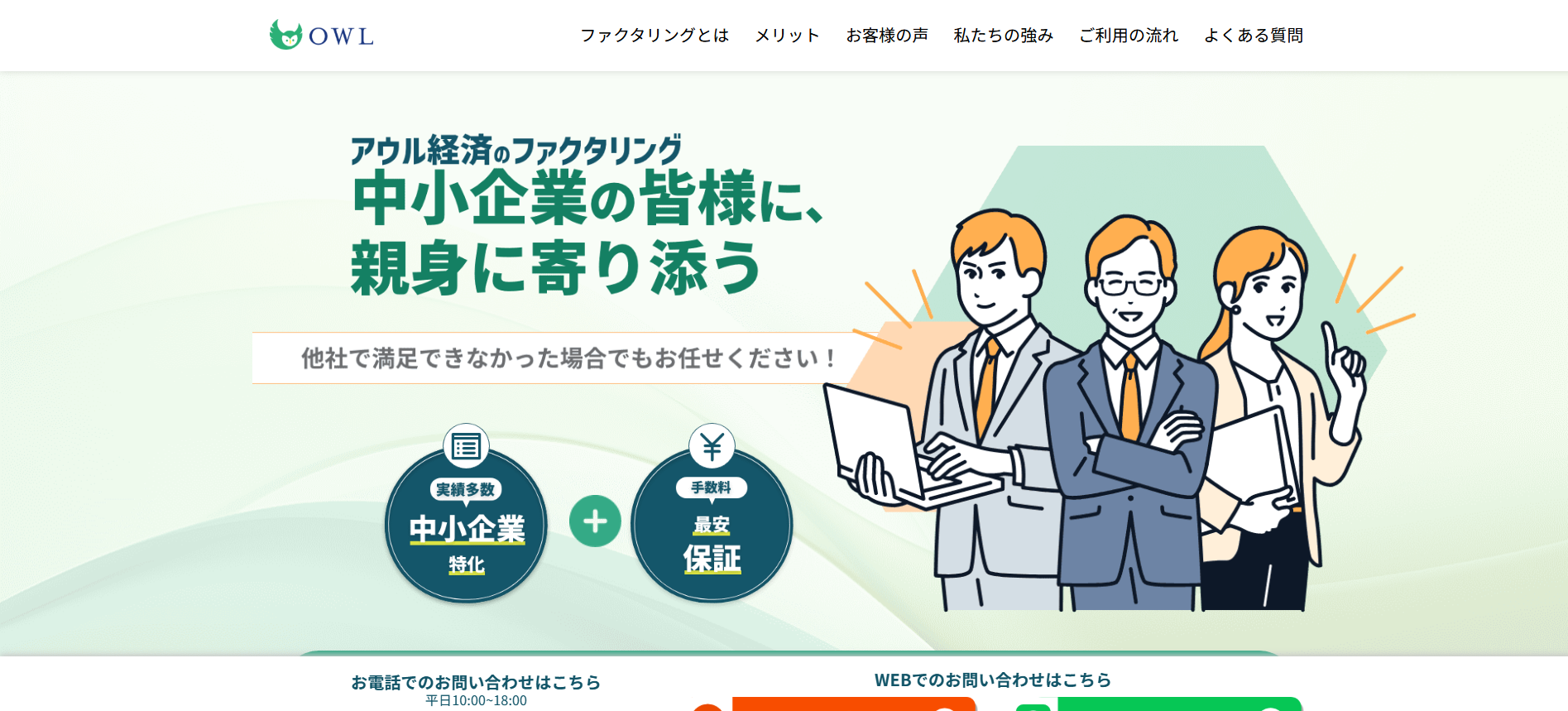 | アウル経済 | 2社間 | 1%~ | 最短即日 | 非公開 | アウル経済公式HP |