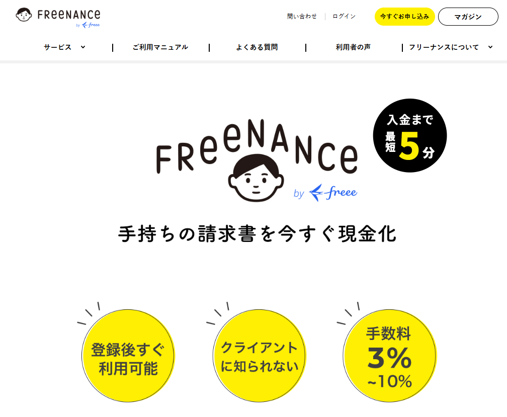 | フリーナンス | 2社間 | 3%〜10% | 最短5分 | 非公開 | フリーナンス公式HP |