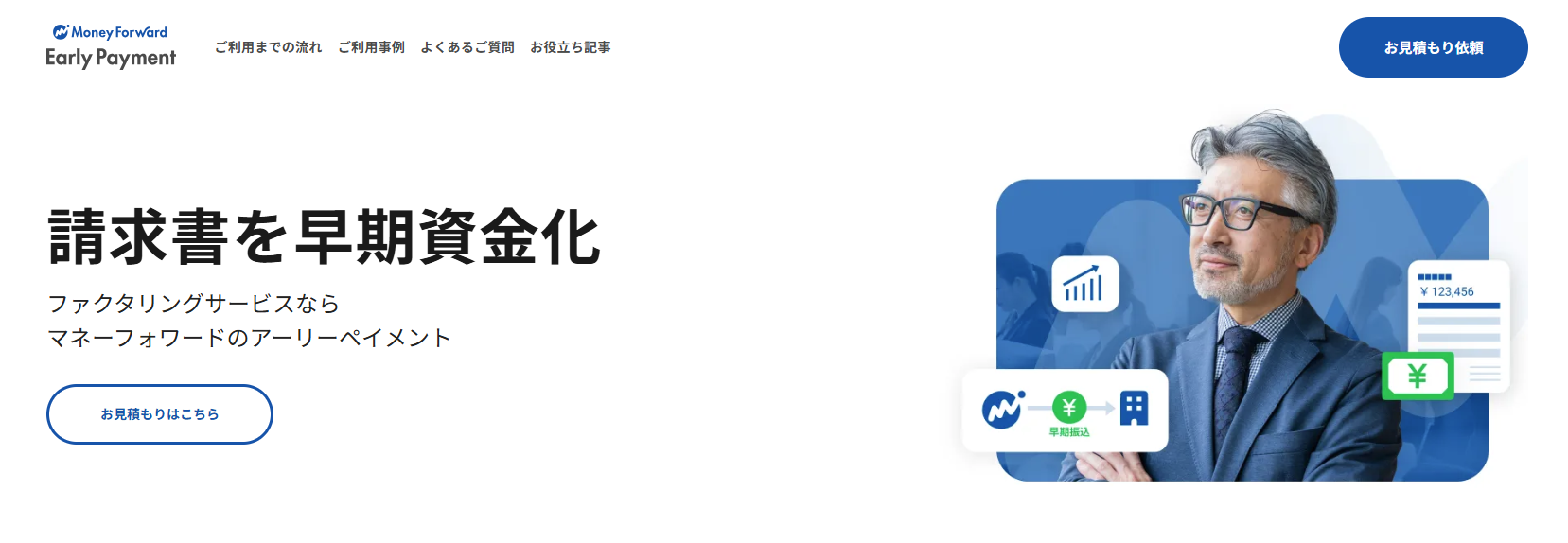 | マネーフォワードアーリーペイメント | 2社間 | 1%~10% | 最短2営業日 | 50万円~数億円 | マネーフォワードアーリーペイメント公式HP |