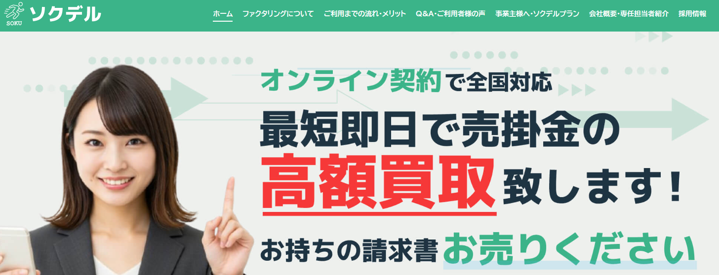 | ソクデル | 2社間・3社間 | 5%〜 | 最短60分 | 最大1,000万円 | ソクデル公式HP |