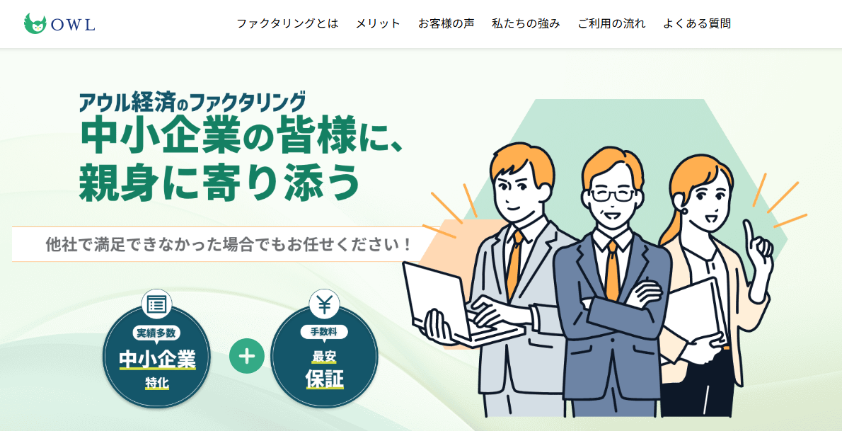 | アウル経済 | 原則2社間 | 1%〜 | 最短即日(通常即日〜数日) | 50万円〜 | アウル経済公式HP |