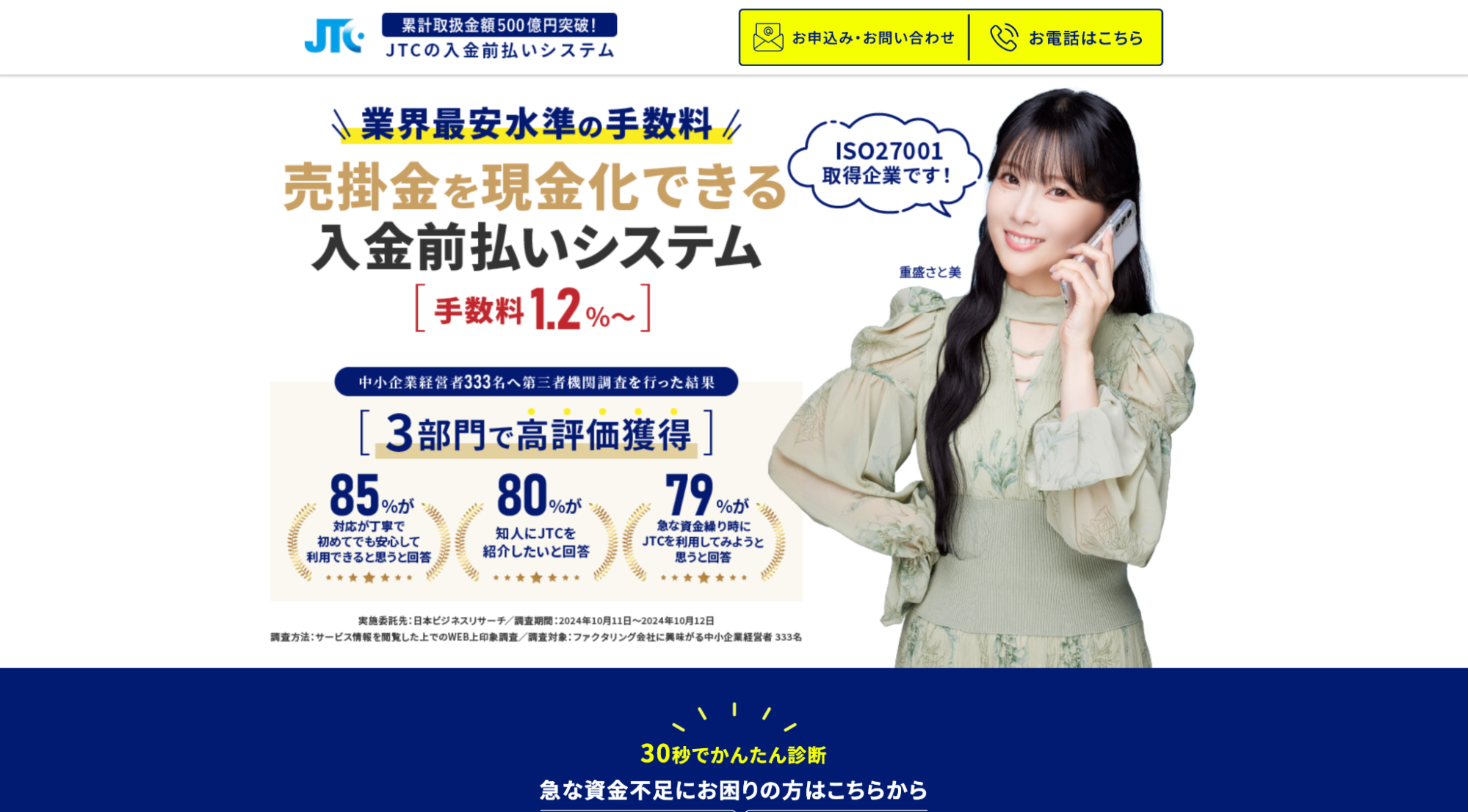 | JTC | 2社間・3社間 | 1.2%〜 | 最短1日 | 上限なし | JTC公式HP |