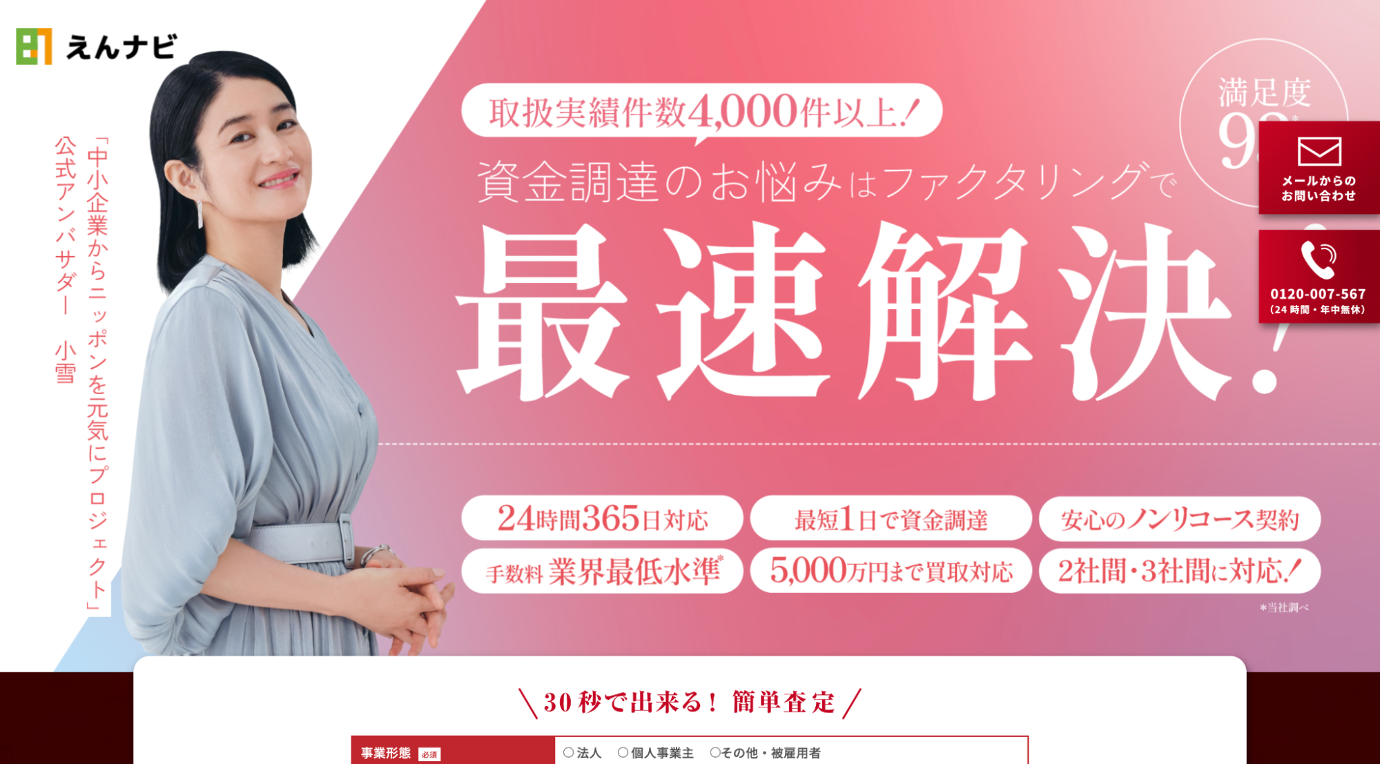 えんナビは、最短即日で資金調達できるファクタリング会社です。完全非対面で手続きが完了します。