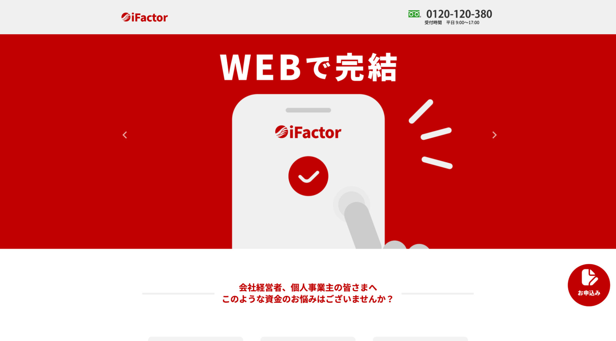 | アイファクター | 2社間 | 3.1%~ | 最短即日1時間 | 1万円~ | アイファクター公式HP |