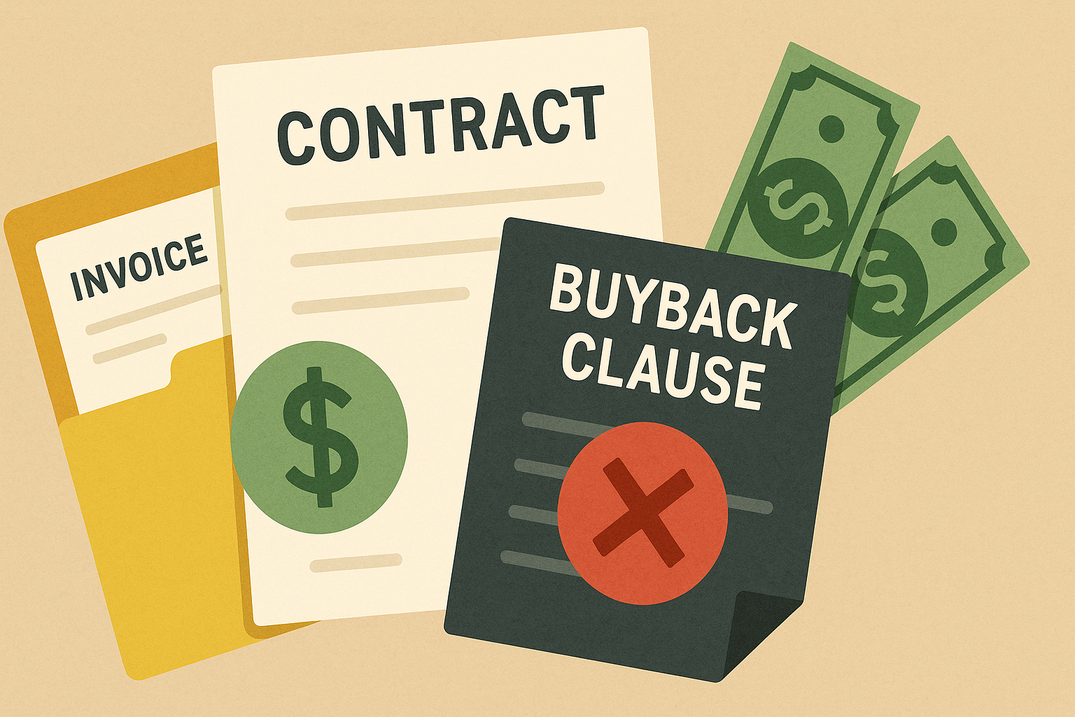 契約書に「償還請求権」や「買戻し特約」が盛り込まれていると、実質的に貸金業に該当する可能性が高いです。