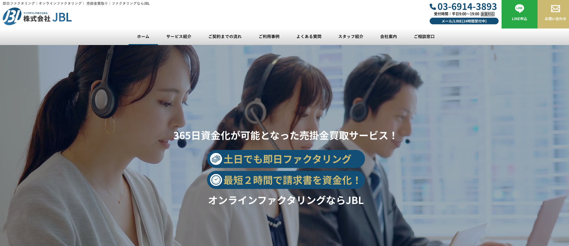 | JBL | 2社間・3社間 | 2%〜14.9% | 最短即日 | 〜1億円 | JBL公式HP |