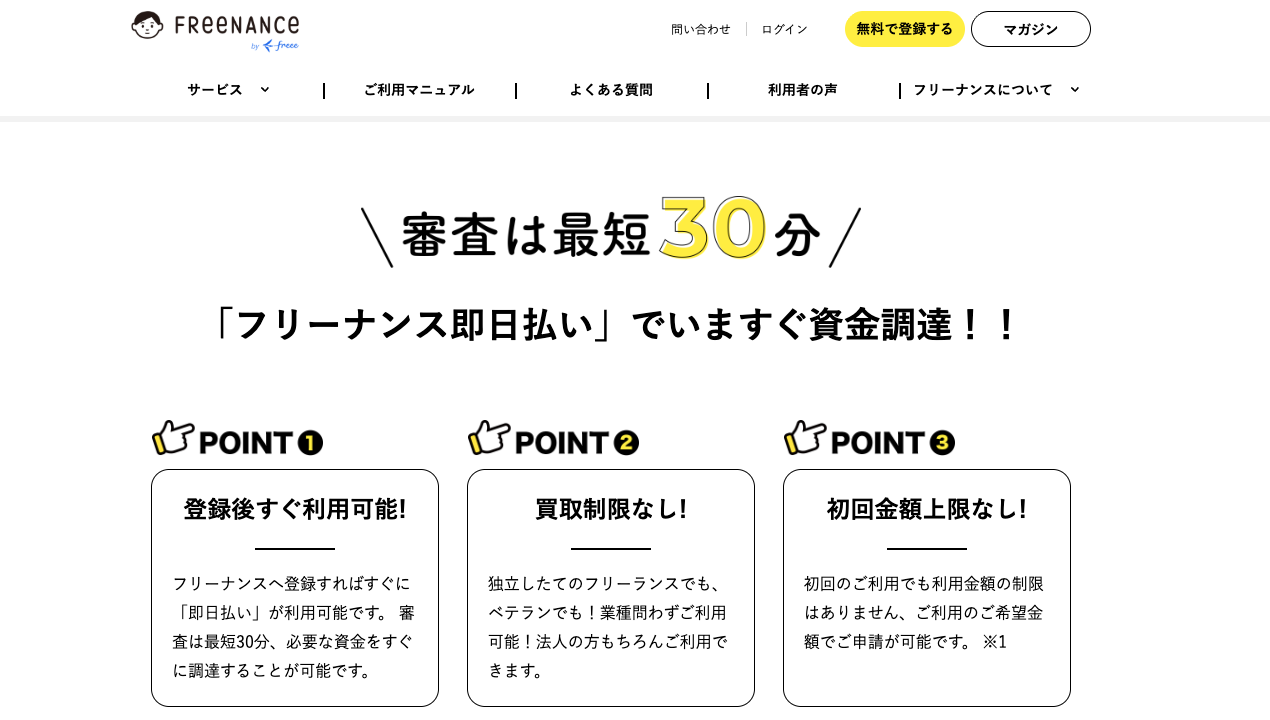 | フリーナンス | 2社間 | 3%〜10% | 最短即日 | 制限なし | フリーナンス公式HP |