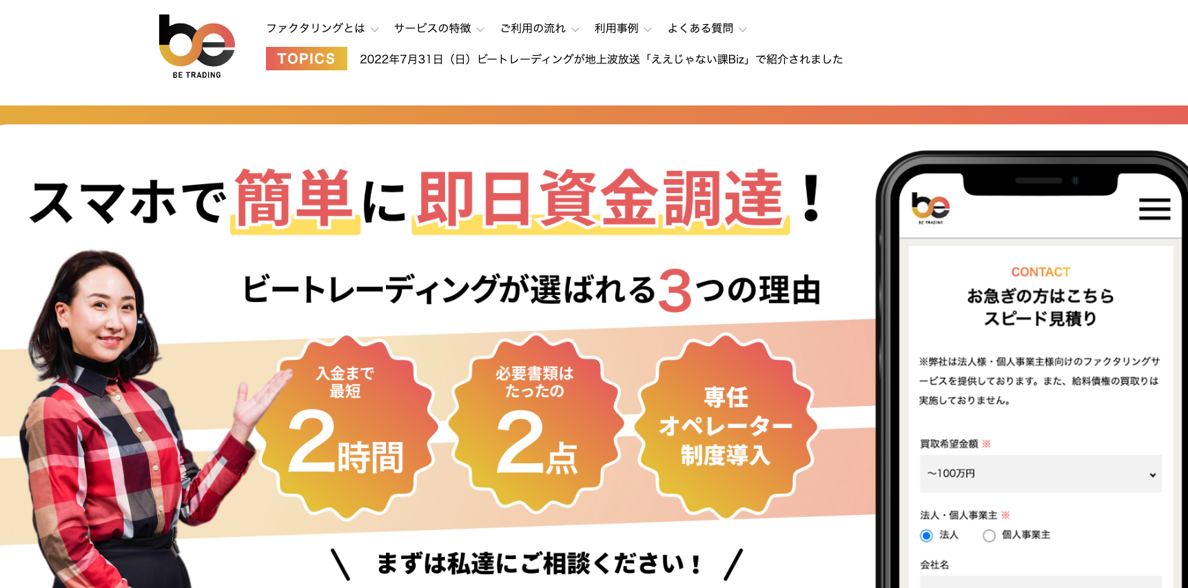 2社間や3社間のファクタリングをはじめ、広告・IT専門の「ペイブリッジ」や資金調達のデメリットをゼロに近づけた「ゼロファク」といったさまざまな商品を展開しています。