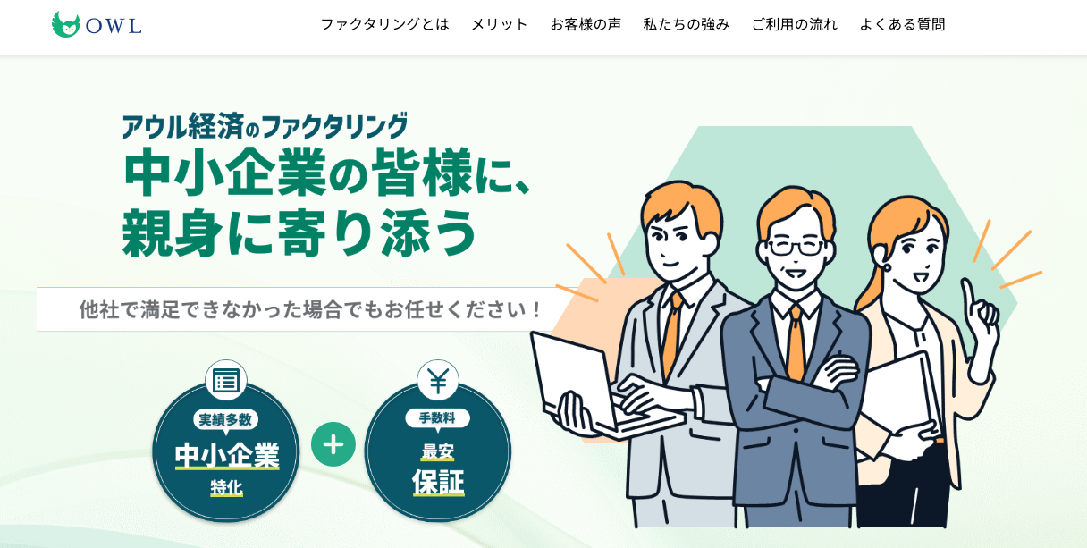 | アウル経済 | 2社間 | 1%〜10% | 非公開 | 50万円〜 | アウル経済公式HP |
