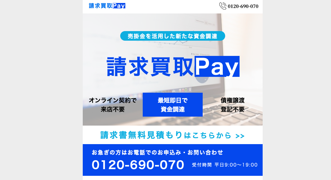 | 請求書買取Pay | 2社間 | 非公開 | 最短即日 | 非公開 | 請求書買取Pay公式HP |