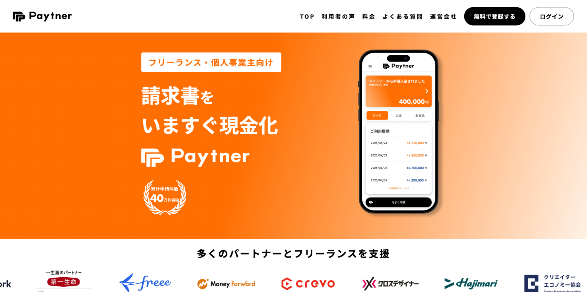 | ペイトナー | 2社間 | 10% | 最短10分 | 非公開 | ペイトナー公式HP |