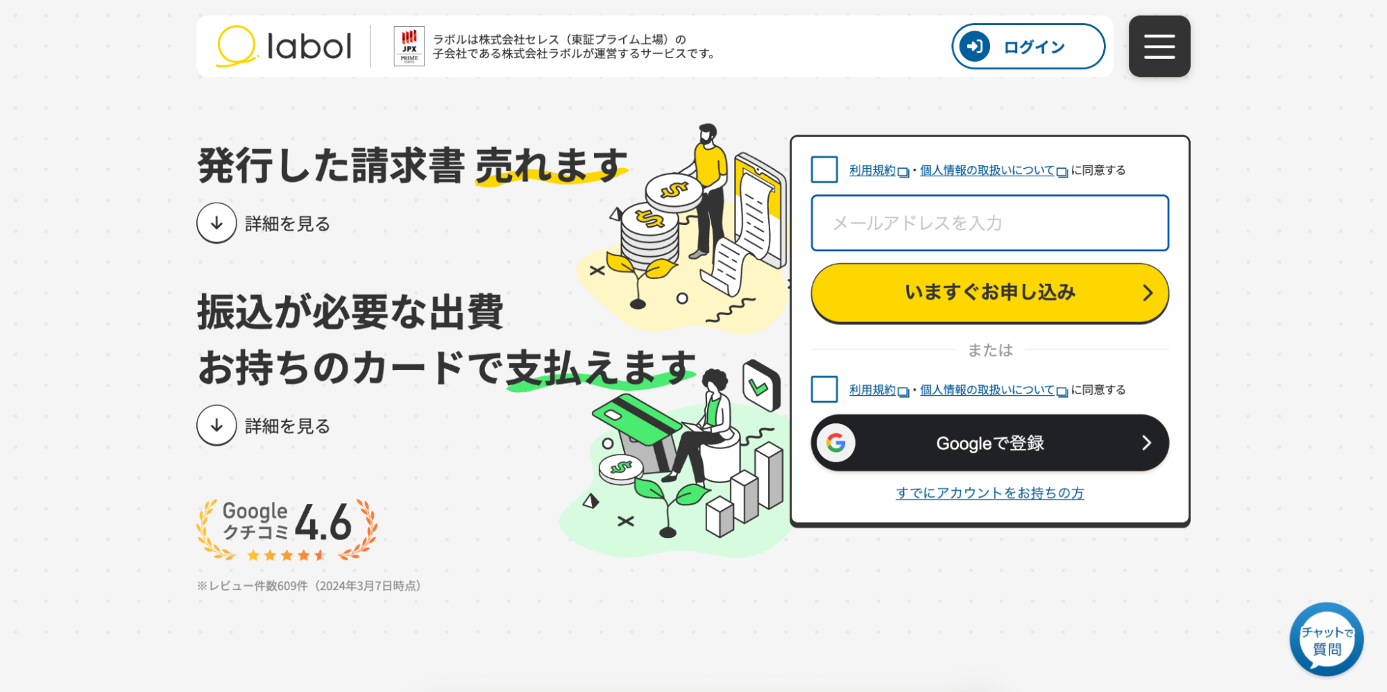 | ラボル | 2社間 | 10% | 最短30分 | 1万円〜 | ラボル公式HP |