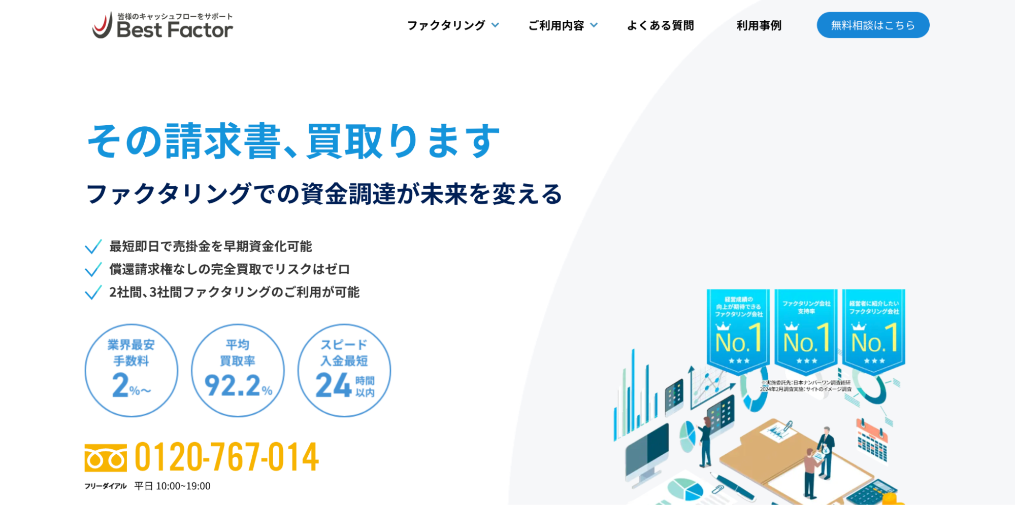 | ベストファクター | 2社間・3社間 | 2%〜 | 非公開 | 30万円〜 | ベストファクター公式HP |
