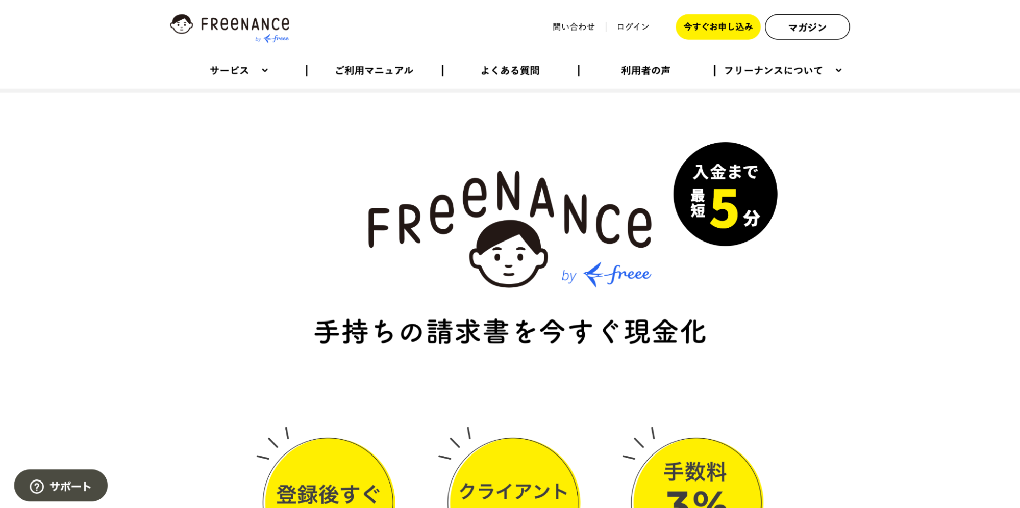 | フリーナンス | 2社間 | 3%〜10% | 最短30分 | 非公開 | フリーナンス公式HP |