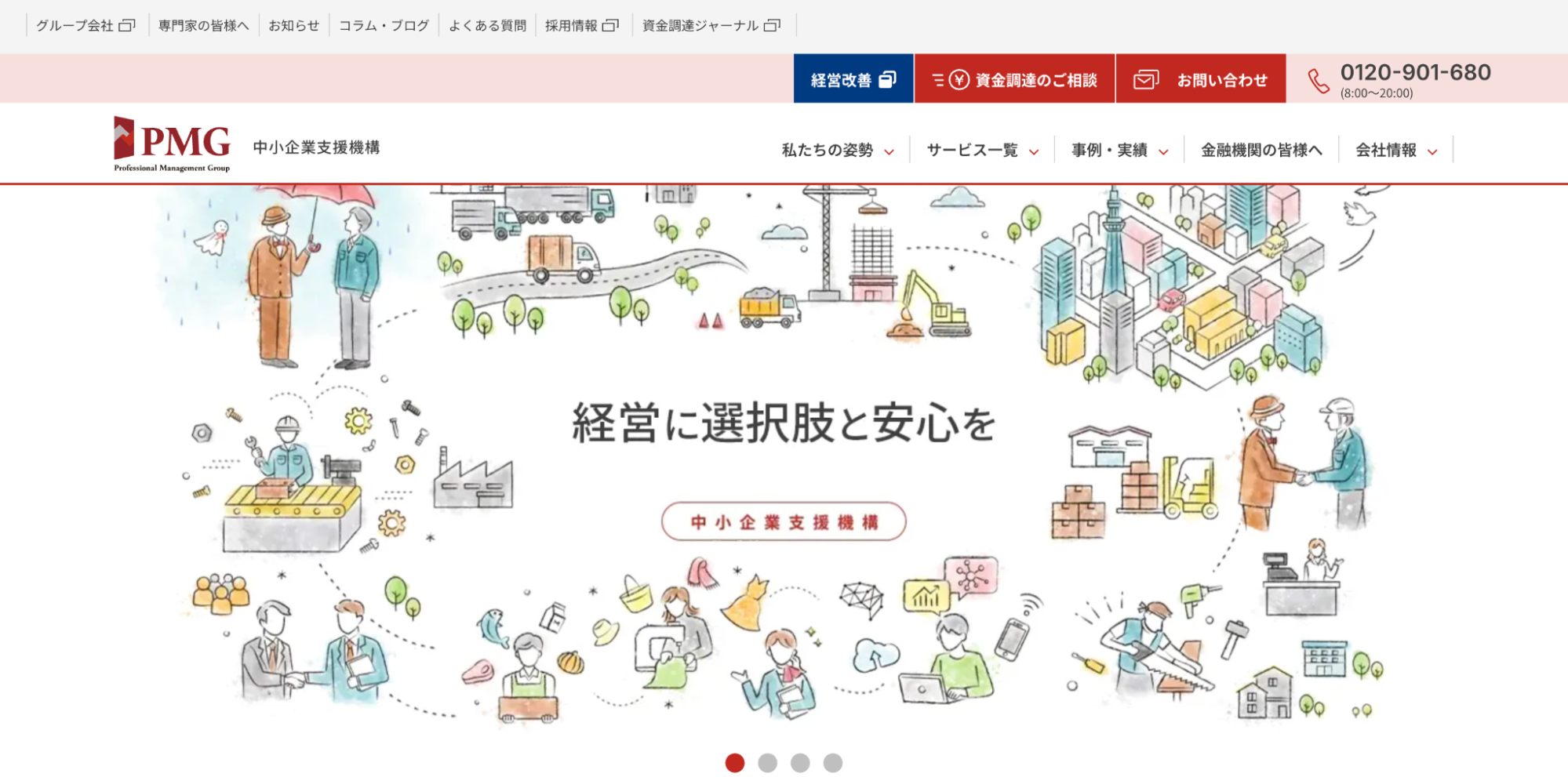 PMGは、中小・零細企業向けのサービスに定評がある会社です。申し込みから資金の振り込みまで最短2時間と素早い対応が特徴で、できるだけ資金を早めに調達したい方におすすめです。