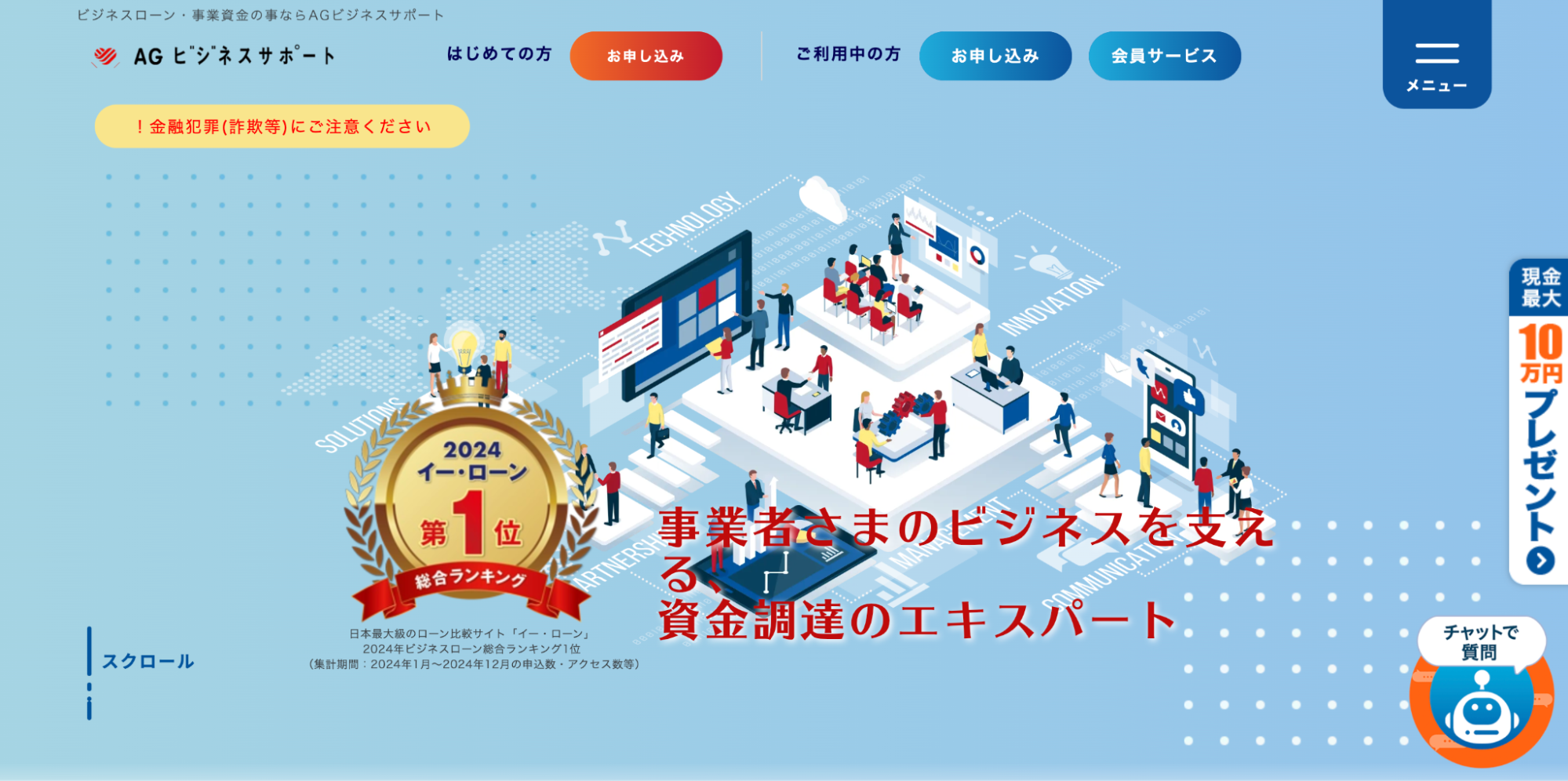 AGビジネスサポートは、手数料が2%〜と最短即日で入金が可能な会社です。独自の審査ノウハウを持っていて、他社でファクタリングを断られた人でも資金調達が可能です。