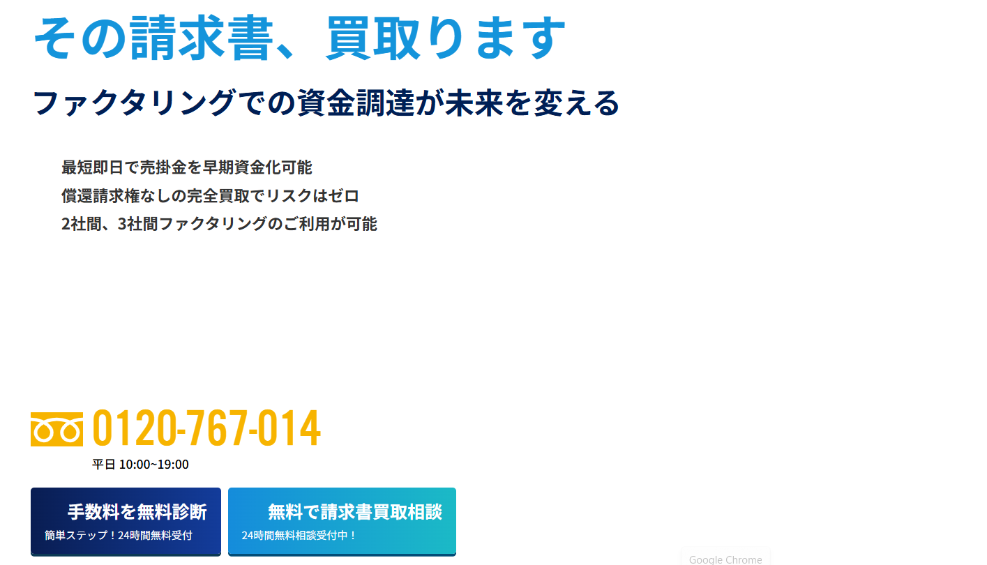| アクセルファクター | 2社間・3社間 | 0.5~ | 最短即日2時間 | 非公開 | アクセルファクター公式HP |