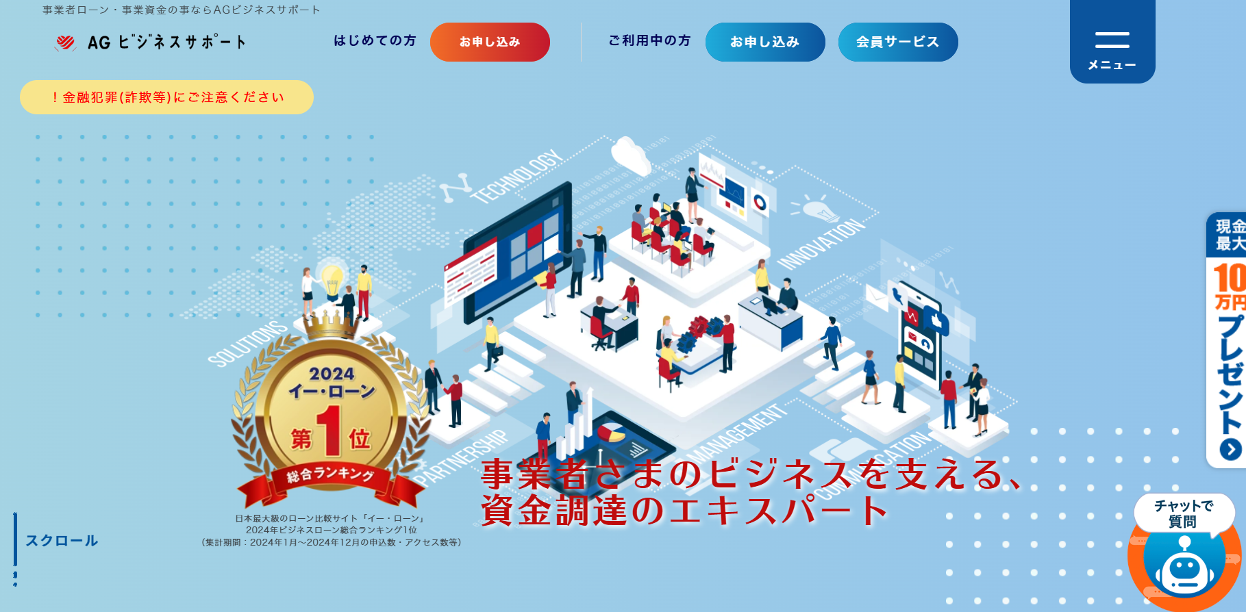 | AGビジネスサポート | 2社間・3社間 | 2%~12% | 最短即日 | 10万円~ | AGビジネスサポート公式HP |
